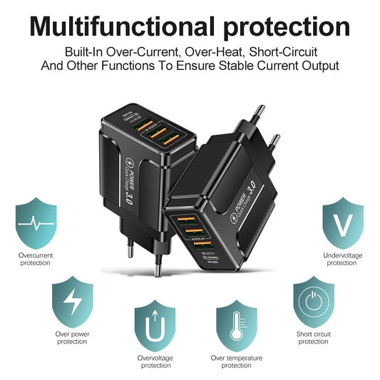 Fast Charger Type C 4 Ports PD USB Mobile Phone Charger Multiple Port QC 3.0 Quick Charging Charger for Iphone Xiaomi Huawei