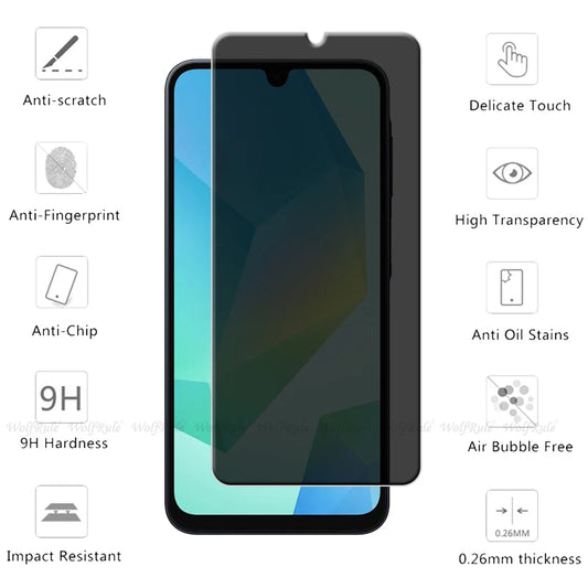 1/2/3/4Pcs For Samsung A16 Glass Samsung A16 Tempered Glass 9H Privacy Anti-Spy Cover Glue Screen Protector Samsung Galaxy A16
