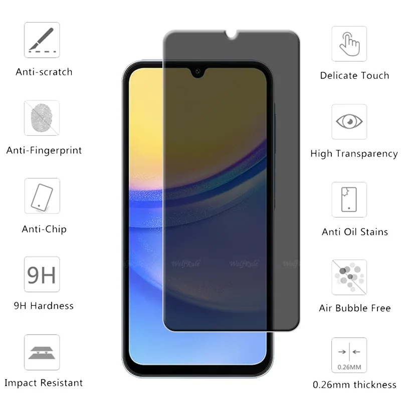 1/2/3/4Pcs For Samsung A16 Glass Samsung A16 Tempered Glass 9H Privacy Anti-Spy Cover Glue Screen Protector Samsung Galaxy A16