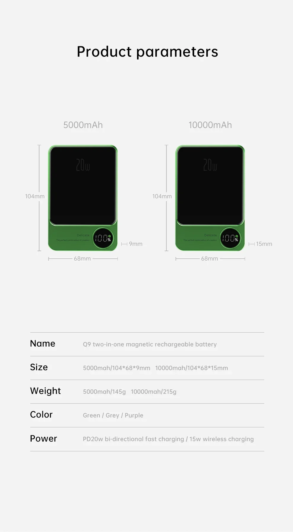 Specification: 5000mAh(104*68*9mm 145g) 10000mAh(104*68*15mm 215g)